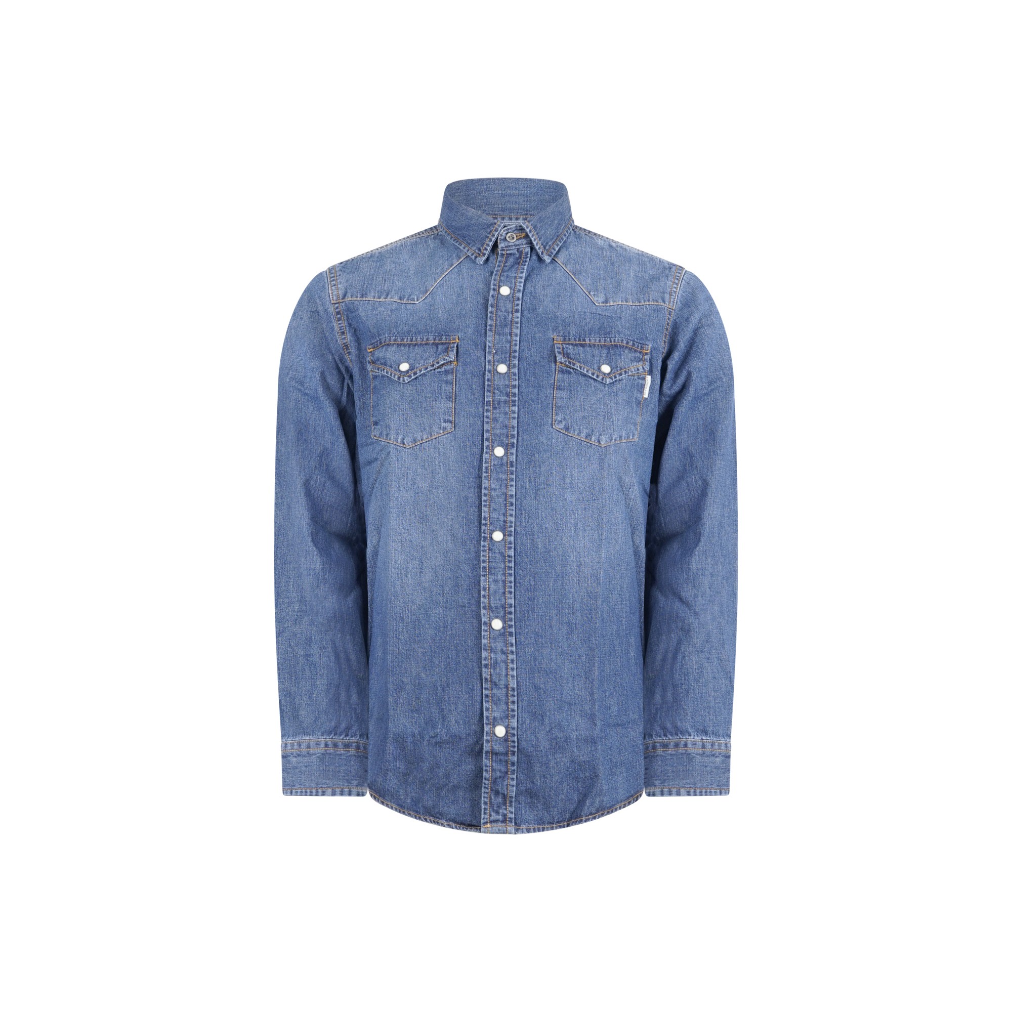 Camicia in jeans denim medio Martin man manica lunga con tasche sul petto