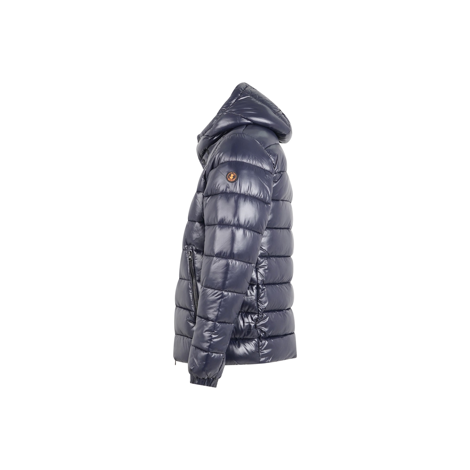 Save The Duck - Giubbotto blu Florian in tessuto lucido con cappuccio per uomo